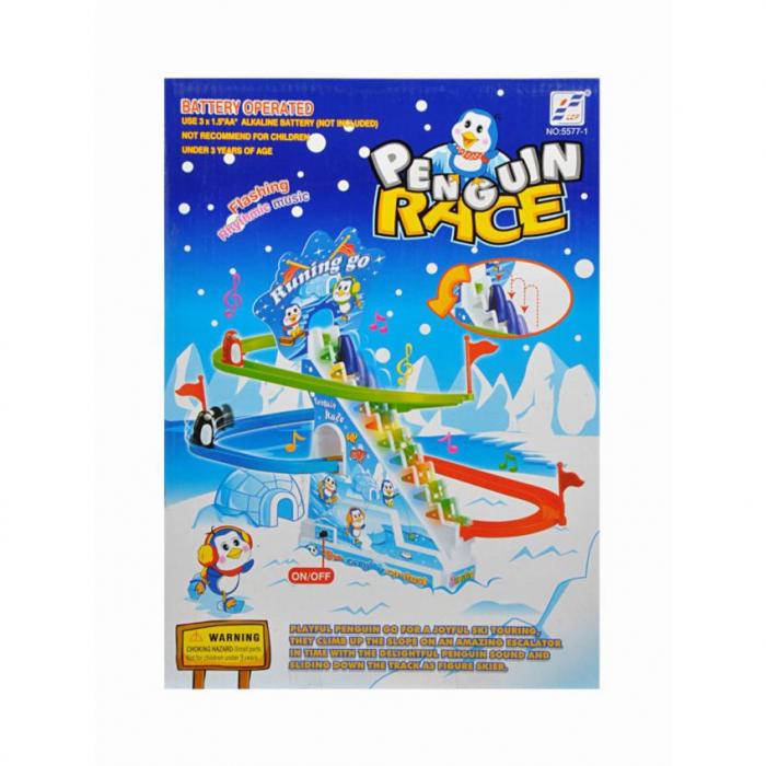 Funny Battery operated racing penguins slides down the track and goes up to the top to slide again with AMAZING MUSIC and LIGHTS.THE FUN BEGINS!!!!!