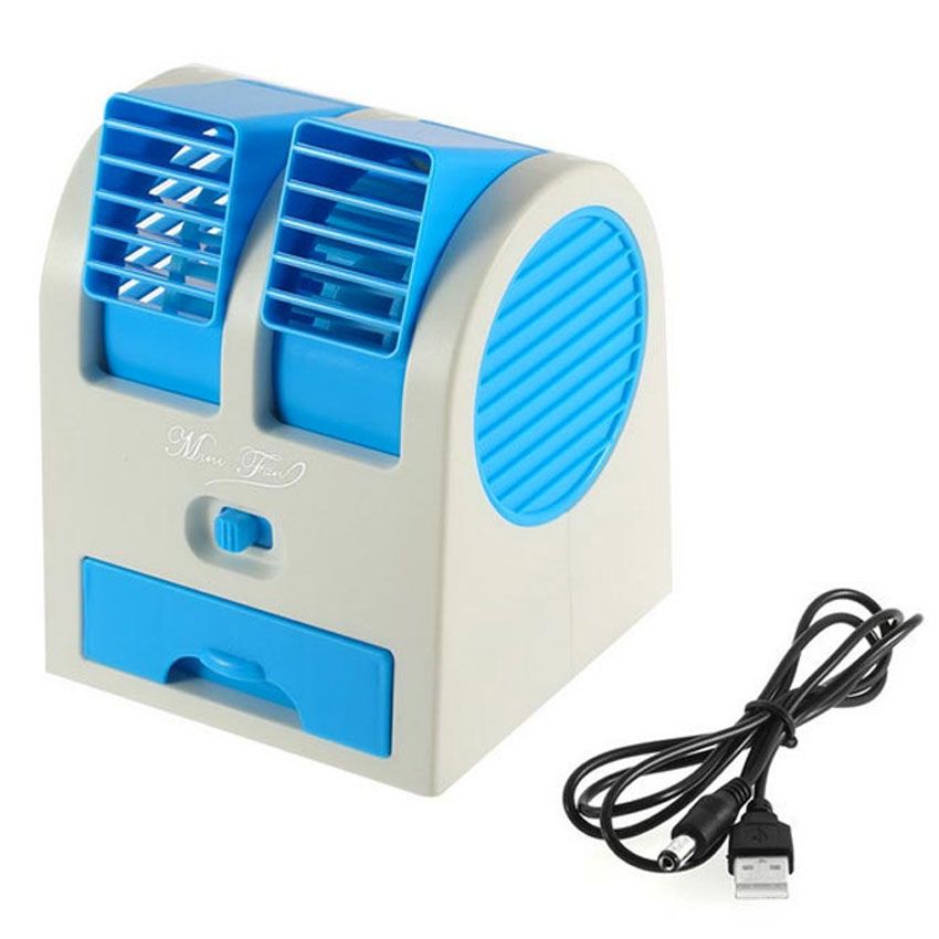 Portable Dual-Port USB Air Cooler Fan Mini Flexible Dual-Port Bladeless Design Works with USB Power or 3 x AAA Batteries (Not included) Material: Acrylonitrile Butadiene Styrene Water Cooled and Fragrant Fan Color: Random Color Size: 165 x 84 x 55mm Net Weight: 370g Made in China Package Includes: 1 x Fan 1 x USB Cable